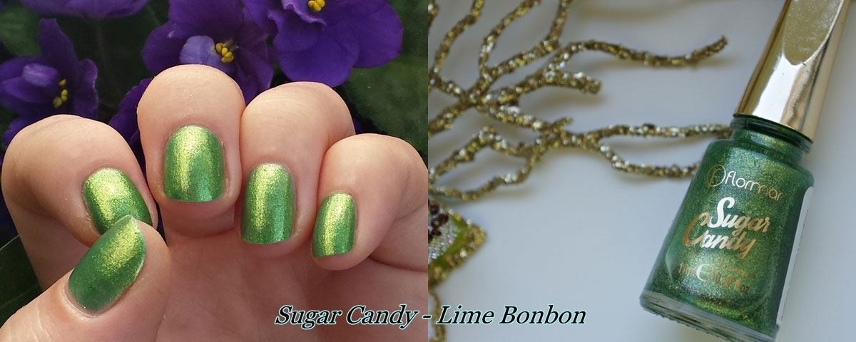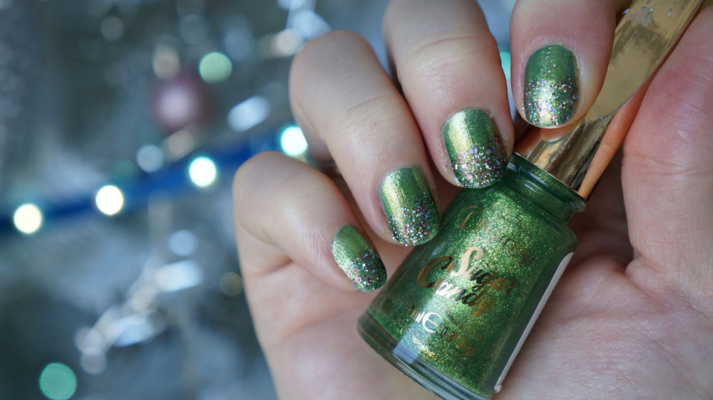 Am purtat nuanța Lime Bonbon din colecția Sugar Candy aplicată și singură dar și combinată cu strălucirea lui Pink Pill. E un verde auriu cu particule mici și sclipicioase, o nuanță fresh, văratică și îndrăzneață aș spune eu.