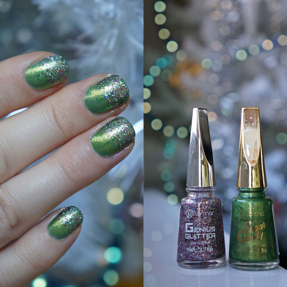 Să vă fac cunoștință cu Sugar Candy și Genius Glitter de la Flormar, două nuanțe pline de strălucire, cu tonuri de lila, galben, verde, roz, o nebunie 😀 .