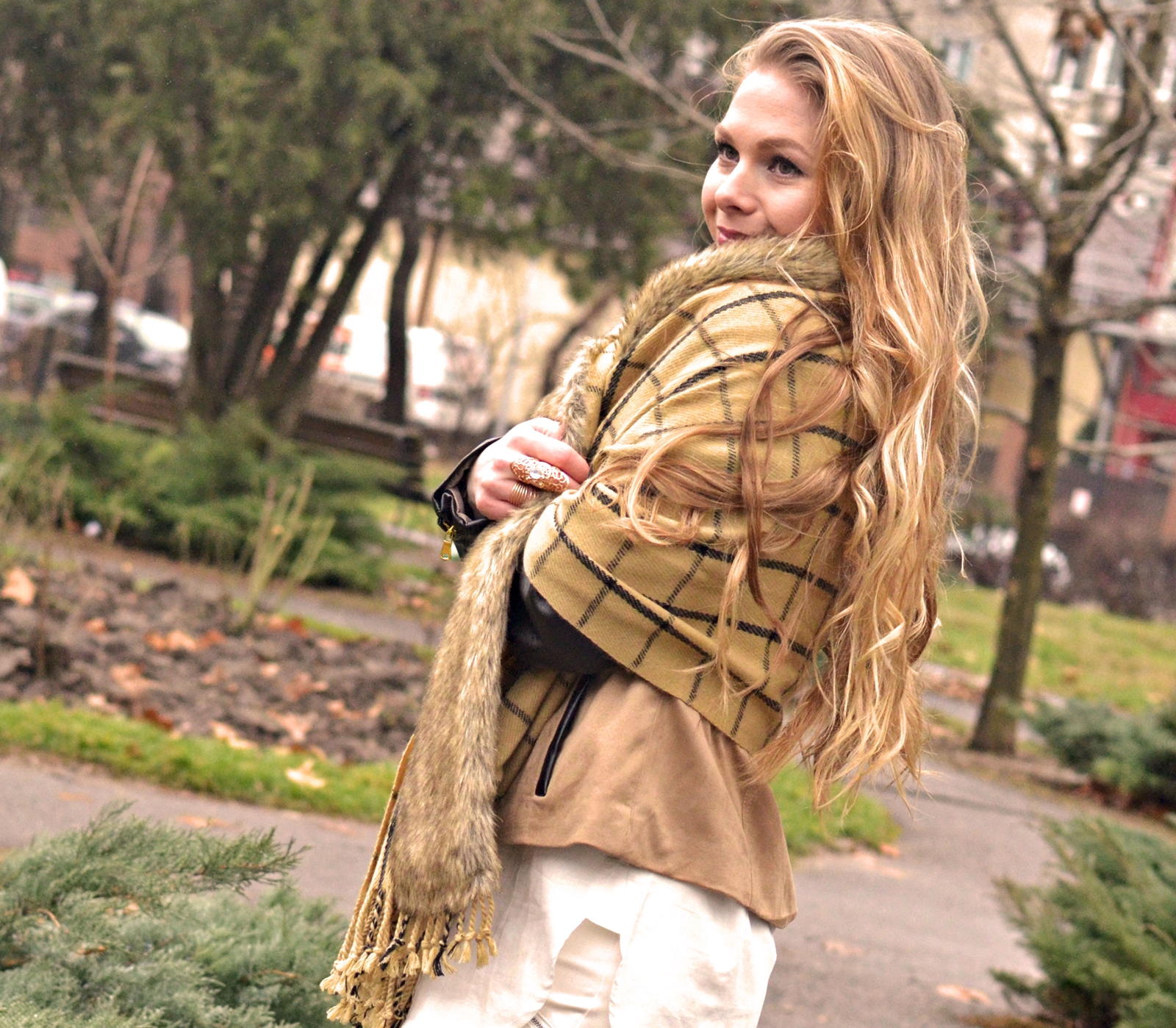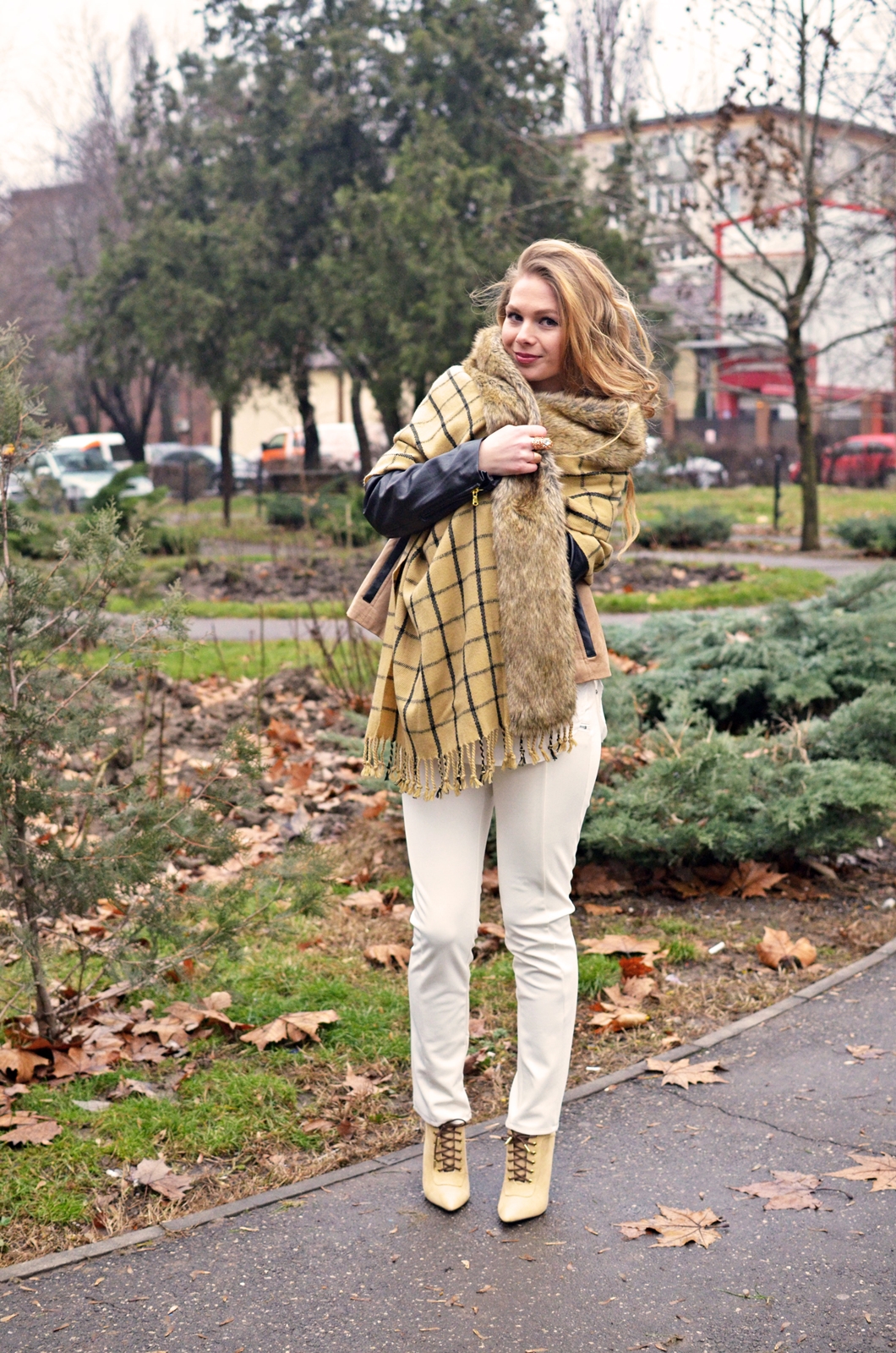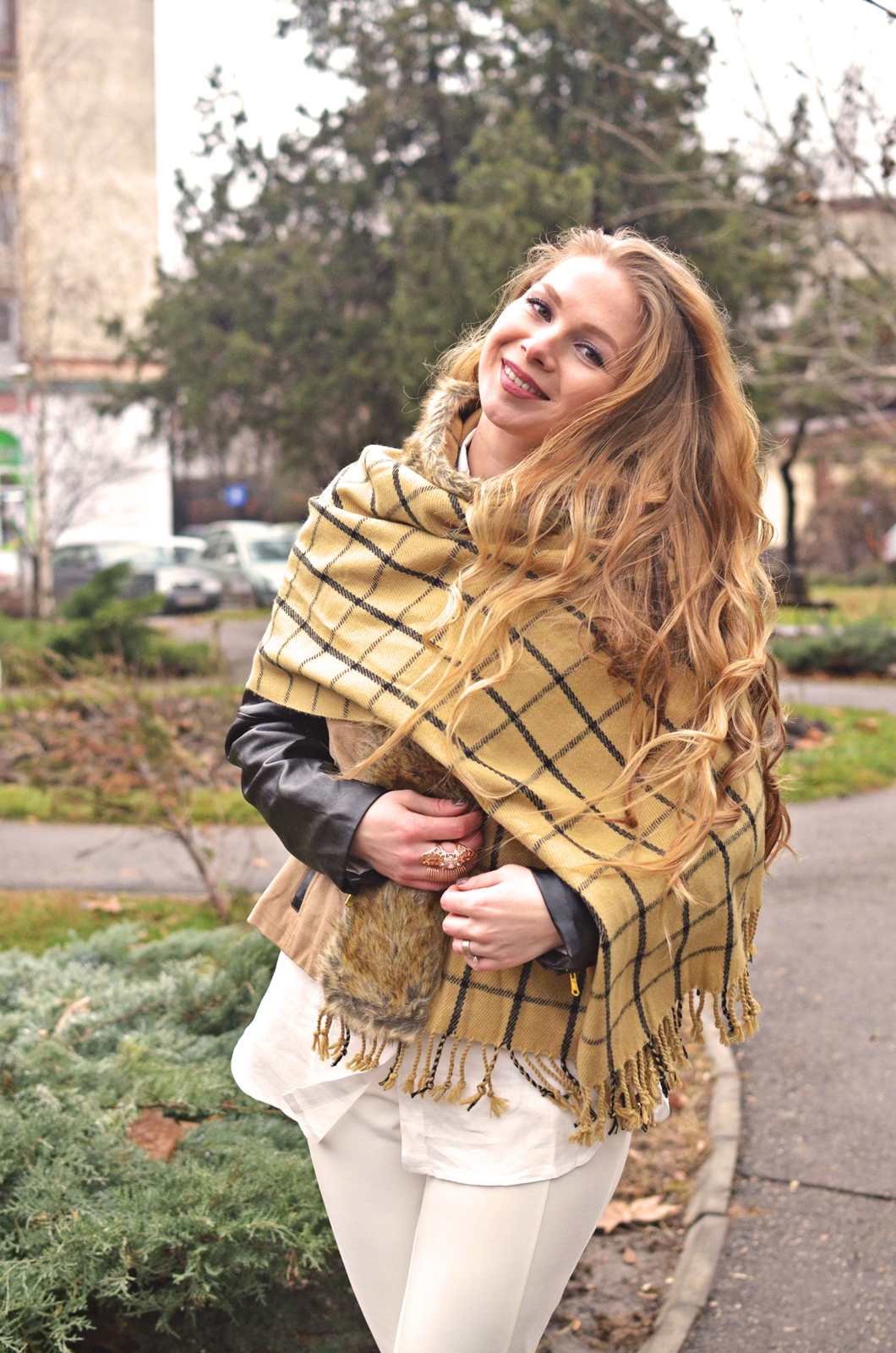 Vreau să laud în mod special cămașa albă cu etichetă Inditex care îmi place la nebunie și abia aștept să o port la primăvară. E puțin transparentă dar nu așa rău încât să par obraznică. Am găsit-o AICI la un preț destul de mic. Foarte încântată mă declar și de fularul cu blăniță care mi s-a părut super interesant ca model. Scoate orice ținută din anonimat, poate fi purtat în multe feluri și e și călduros. I love it!
