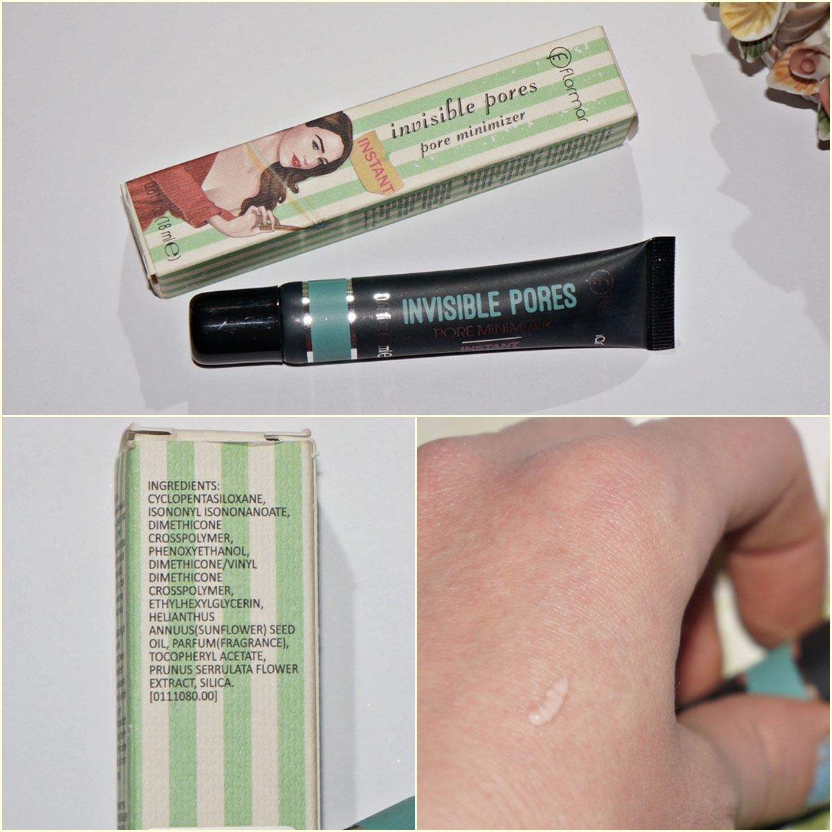 Invisible Pores (Pore Minimizer Instant). Singurul produs pentru micșorarea porilor pe care l-am folosit până acum, în afară de ăsta de la Flormar, a fost unul de la Benefit care mi-a plăcut la fel de mult din câte îmi aduc aminte. Diminuarea porilor se observă aproape instant, imediat după aplicare iar pielea se simte super fină la atingere. Eu l-am aplicat doar pe obraji și foarte puțin pe frunte și doar înainte de fondul de ten. Nu l-am utilizat chiar la fiecare machiaj pentru că de cele mai multe ori mă grăbesc și abia am timp de toți pașii.