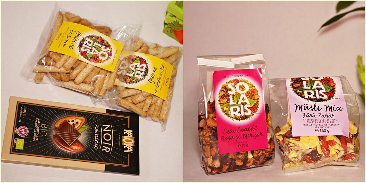 De când am devenit mamă am început să-mi petrec foarte mult timp în bucătărie (cred că toate mămicile o pățesc) dar nu o spun ca pe o mustrare pentru că nu e ceva care să nu-mi placă. În primul rând pentru că am grijă ca alimentația băiețelului să fie cât mai sănătoasă și diversă, pachețelul lui tati trebuie pregătit aproape în fiecare seară ca să fie proaspăt; și mami, adică eu, a început o dietă. M-am tot lăudat cu dieta pe care am început-o în ianuarie și mă declar extrem de mulțumită de rezultate. Este vorba de Rina 90 pe care v-o recomand cu toată încrederea dacă aveți kg în plus. Nu am ținut niciodată nici o altă dietă dar din auzite și citite vă spun că asta e foarte ușoară față de alte diete. Nu e nimic complicat, este permisivă, eu una n-am simțit deloc că rabd de foame sau că mă chinui. Doar în primele zile mi-a fost greu și atât. Și asta pentru că sunt gurmandă și pofticioasă și aveam prostul obicei să mănânc ceva la 9-10 seara plus desert după fiecare prânz. Dacă vă tentează dați un search pe google sau faceți rost de carte direct. La mine se blocase cântarul la 60,4 kg vreo 2 luni și nu-mi mai plăcea deloc cum arătam, iar după prima săptămână de dietă deja aveam aproape 2 kg pierdute. Am mușcat mult din cașcaval pe parcursul dietei, adică nu am respectat-o ca la carte pentru că nu am prea multe kg în plus și nici să ajung schilodenie nu vreau.DSC07794În fine…Să vă povestesc despre câteva bunătăți de la Solaris, ce folosesc cel mai des și cum, plus câteva informații utile.