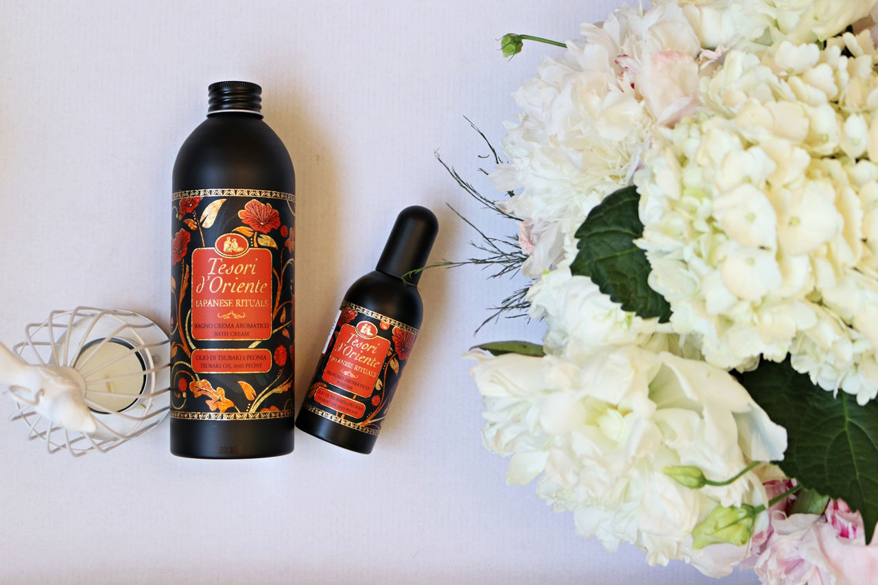 Recent am primit două produse din ultima gamă: Japanese Rituals, “gamă ce integrează ȋn produsele de ȋngrijire ingredientele tradiționale japoneze, pentru o stare de bine și de răsfăt al corpului și al minții.”Tesori.d.OrienteIngredientele principale ale produselor Tesori d’Oriente Japanese Rituals sunt parfumatul bujor și uleiul Tsubaki, obținut prin presarea semințelor de camelie. Acesta din urmă este bogat ȋn acizi grași, Omega 9, vitamina E și colagen vegetal, elemente ce contribuie la hidratarea pielii și redarea și menținerea elasticitătii. Pe langă proprietătile antioxidante și emoliepeoniesnte, aceste ingrediente sunt considerate aducătoare de noroc. Parfumul gamei este intens, aroma combinând note fresh, florale și delicate. Notele de vârf sunt un amestec energizant de citrice, grapefruit și bergamotă care fac intrarea în scenă pentru notele florale de mijloc, compuse din frezii, iasomie, lăcrămioare, trandafir și măsline dulci. La final, notele de patchouli, cedru și mosc sunt aromele lemnoase care persistă, pentru o stare de răsfăt indelungată. Crema de duș o folosesc pe post de gel de duș și ador mirosul pregnant și floral pe care îl degajă. Are o textură intens hidratantă și lasă pielea catifelată și parfumată.