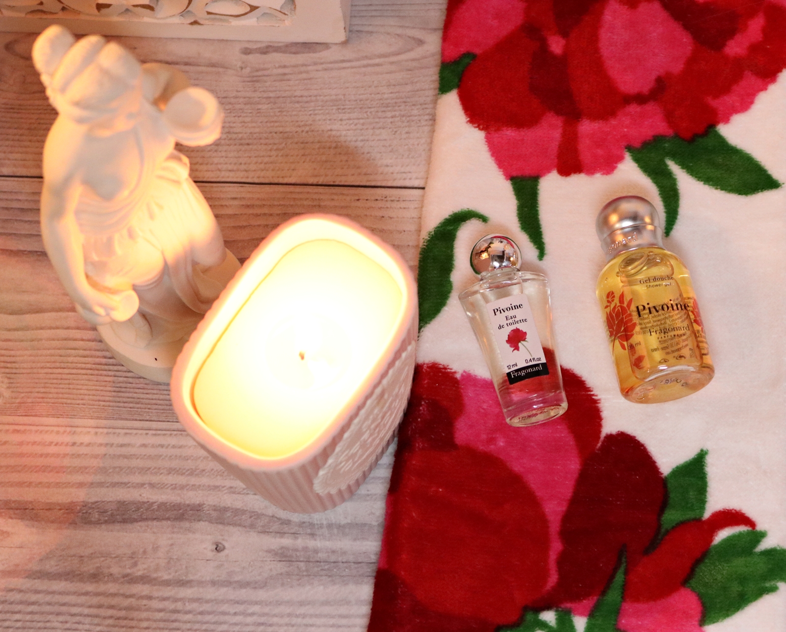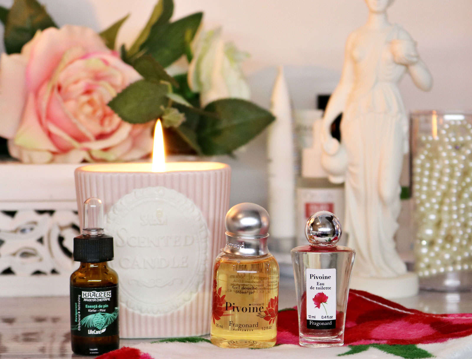 Gama Pivoine conține săpun, gel de duș, apă de parfum, apă de toaletă, mini prosop și un difuzor de cameră. Nici nu vreau să mă gândesc cum ar fi să simt în cameră în permanență parfumul de bujor. Mi-ar plăcea un difuzor de cameră, recunosc.