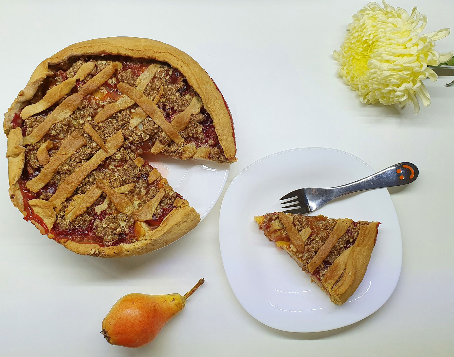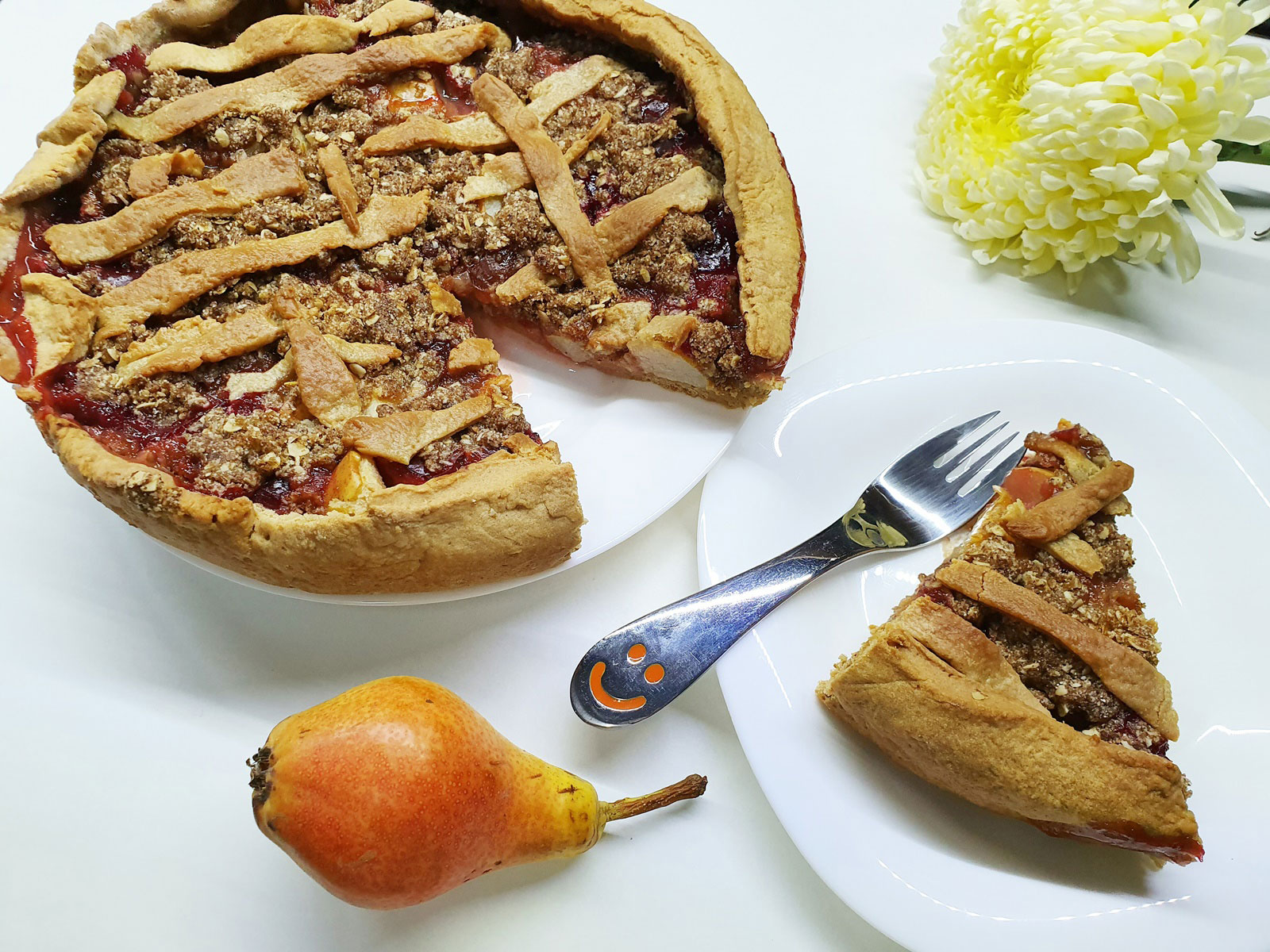 De exemplu, recent am adaptat o rețetă găsită pe net și mi-a plăcut la nebunie ce a ieșit, deși aspectul nu a fost de revistă, după cum puteți observa prin poze. Aveam niște prune prin balcon și cum nu prea aveau succes am zis să scap de ele înainte să se ofilească. Și-am căutat o rețetă de tartă cu prune pe net și-am adaptat-o puțin pentru că aveam poftă de o aromă de cocos și cum nu aveam suficiente prune, am adăugat și 2 pere. Plăcinta cu dovleac este desertul meu preferat toamna iar tarta cu prune și pere ocupă locul 2 fără îndoială. O să încerc și cu gutui rase, sunt tare curioasă de explozia de arome, gutuie, scorțișoară, cocos….nici nu vreau să mă gândesc.