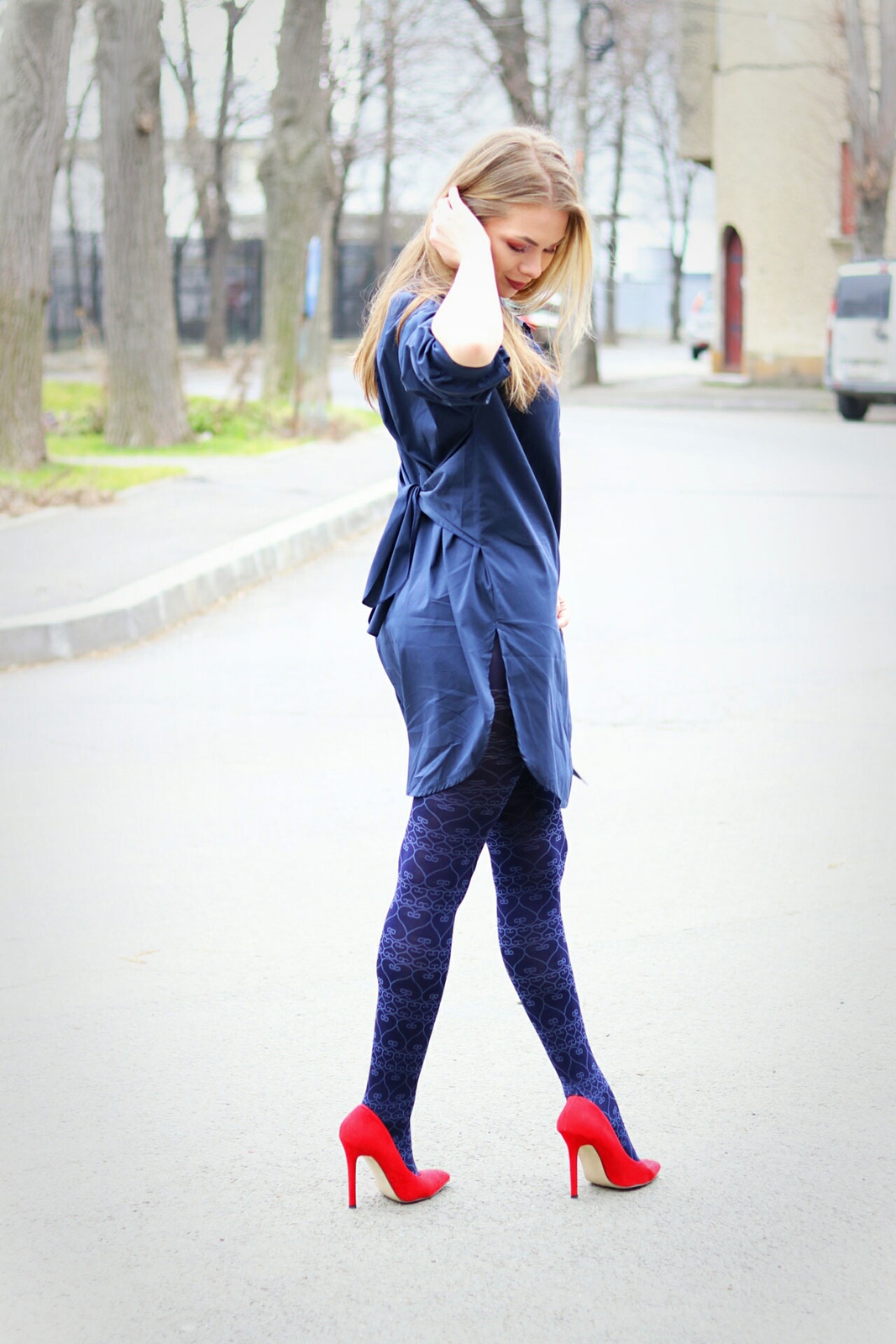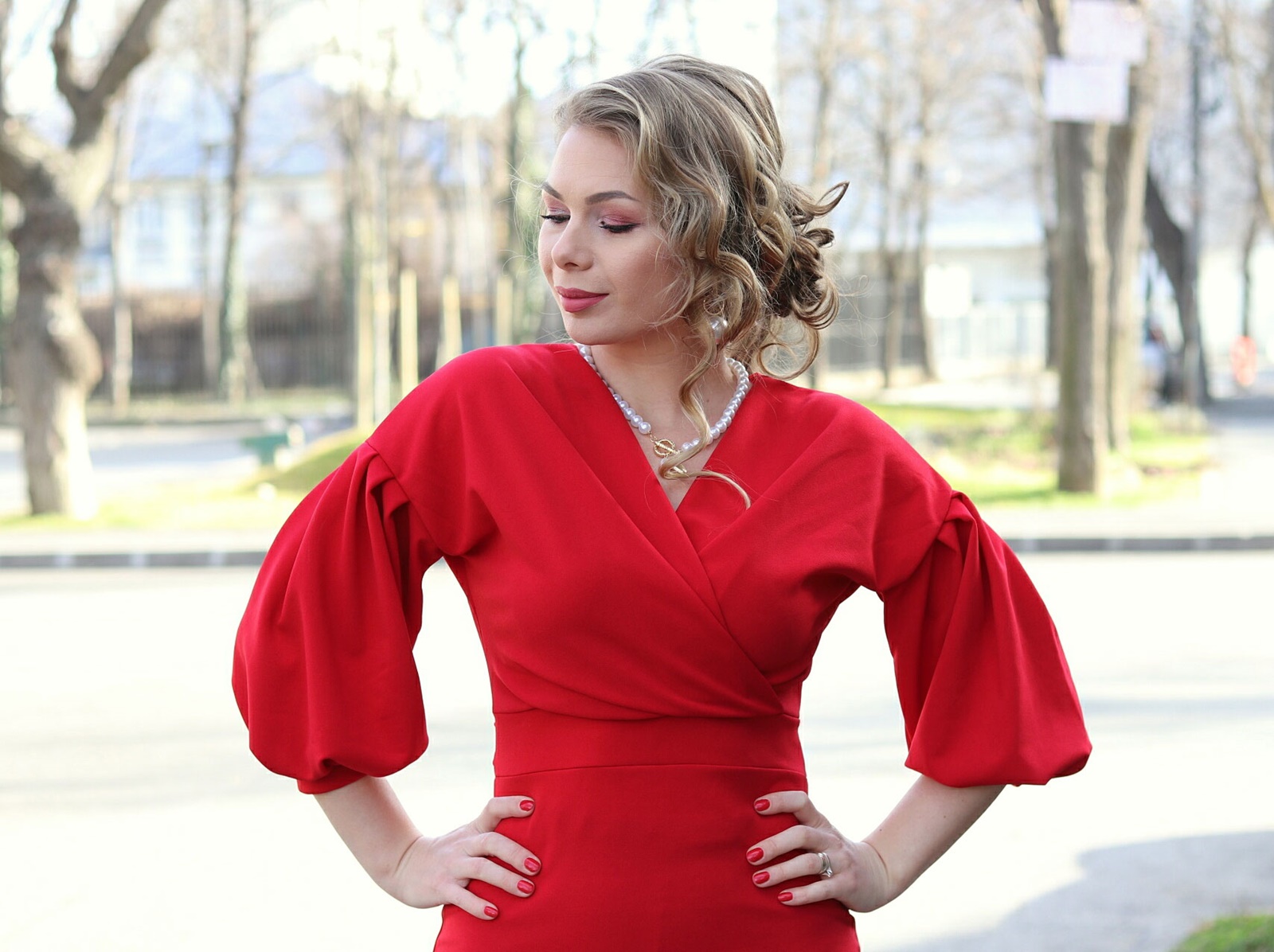 Așa că m-am decis la rochia cămașă bleumarine cu fundă care se leagă în față sau la spate, după preferințe. Tot mărimea 12 am ales și nu prea am fost inspirată pentru că stă pe mine parcă prea lărguță. Îmi place că e un model simplu aparent și totuși puțin sofisticat datorită detaliului de tip cordon încorporat din care poate ieși o fundă faină. E feminină, dar puțin serioasă prin prisma culorii. Când am făcut pozele bătea puțin vântul și sincer nu m-am simțit chiar în siguranță 😆 . Apoi am zis că musai vreau ceva roșu. Nu știu de ce, cred că era perioada cu Valentine’S Day :mrgreen: . Până la urmă am găsit modelul ăsta superb, o rochie pe corp care la fel, are un cordon încorporat în talie și are mâneci bufante. Puteam să o port sexy, căzută pe umeri, dar îmi era și frigut și nici am un decolteu așa pufos care să dea bine 😛 .