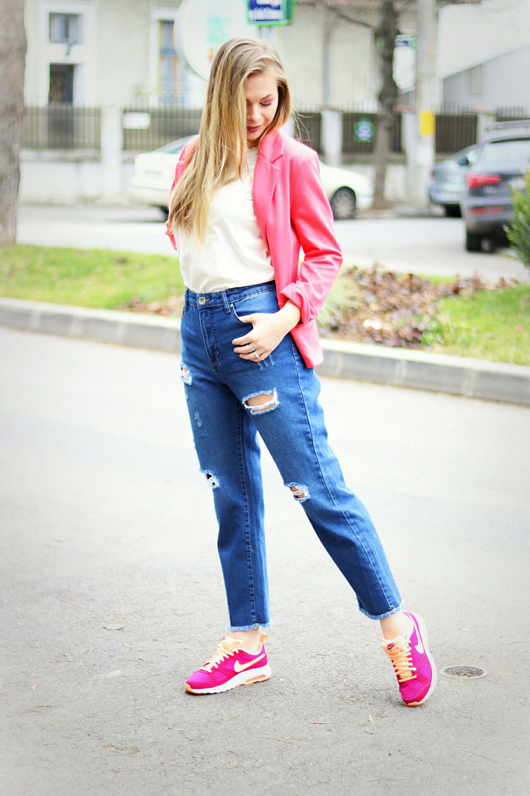 În primă fază am răscolit în categoria Jeans și am și băgat în coș o pereche de jeans. Genul ăsta de pantaloni sunt tot timpul bineveniți și pentru că voiam ceva mai boyfriend, mi-am luat această pereche cu rupturi. Am ales mărimea 12, fiind corespondent cu L (cred). Eu fiind mai lată în șolduri, e riscant să îmi comand ceva la limită și am zis că e mai bine să fie mai mari decât să fie mai mici. În general port 38, dar depinde și de model. Aș fi zis că îmi sunt mari, dar mă simt foarte bine în ei și nu am de gând să îi modific.
