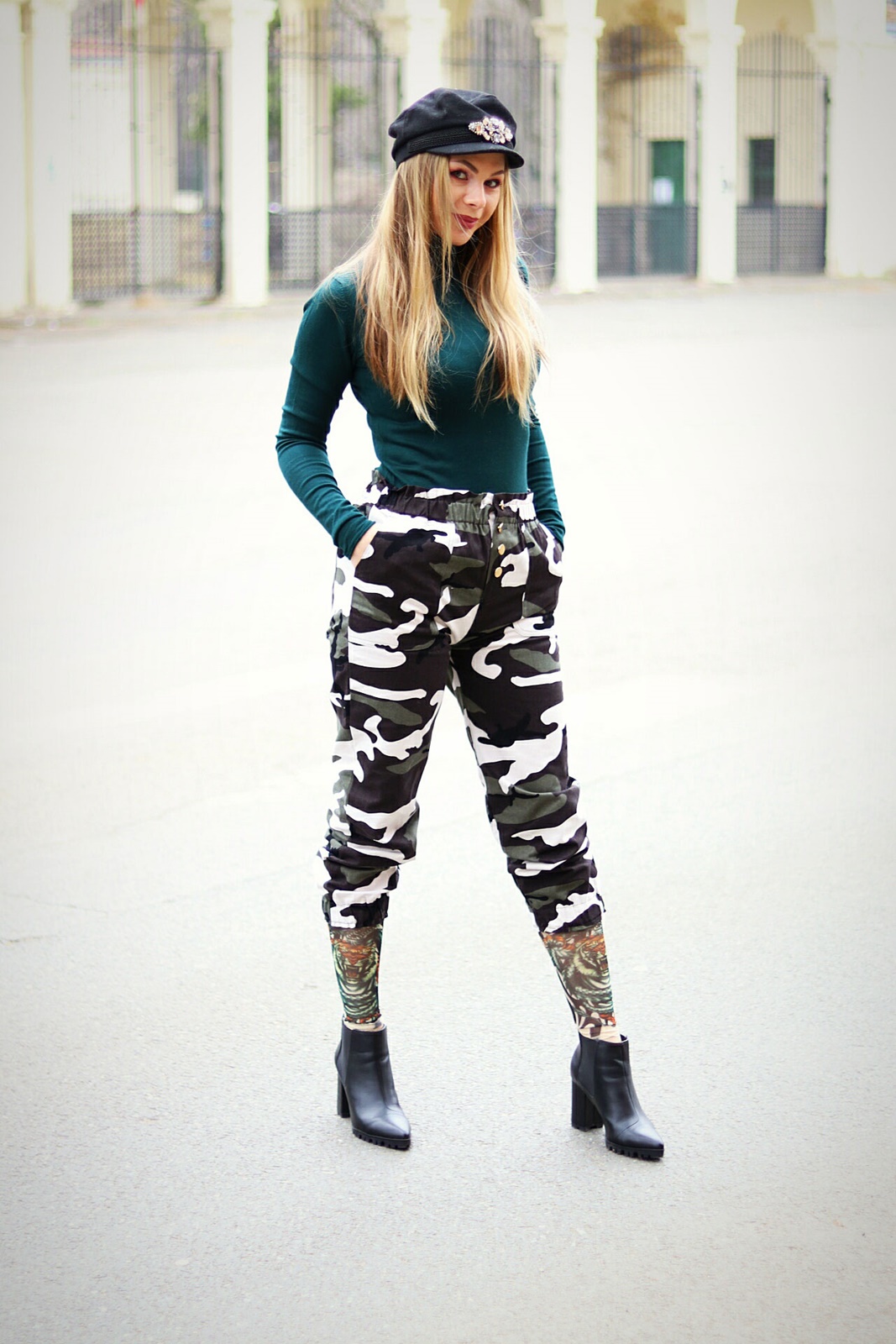 Alți pantaloni la care am râvnit sunt cei army pe care i-am tot văzut prin poze cu fete faine, pe instagram. I-am descoperit la categoria Trousers și cu greu m-am decis la ce colorit de army să aleg. Nu sunt deloc stilul meu, chiar mă întrebăm unde o să îi port, dar am zis că ar fi drăguț să mă asortez cu Ed la o ieșire în parc. Și a fost chiar încântat când i-am zis 🙂 . Numai că lungimea lor pare că nu mi se potrivește sau poate nu sunt eu obișnuită cu lungimea asta. Dacă nu i-aș fi ridicat pe gambe pentru poze, parcă stăteau puțin ciudat. Așa ca model sunt drăguți, au buzunare, talie mai înaltă iar materialul este mai scorțos, nu e ceva subțire și ieftin.